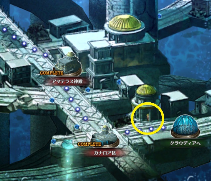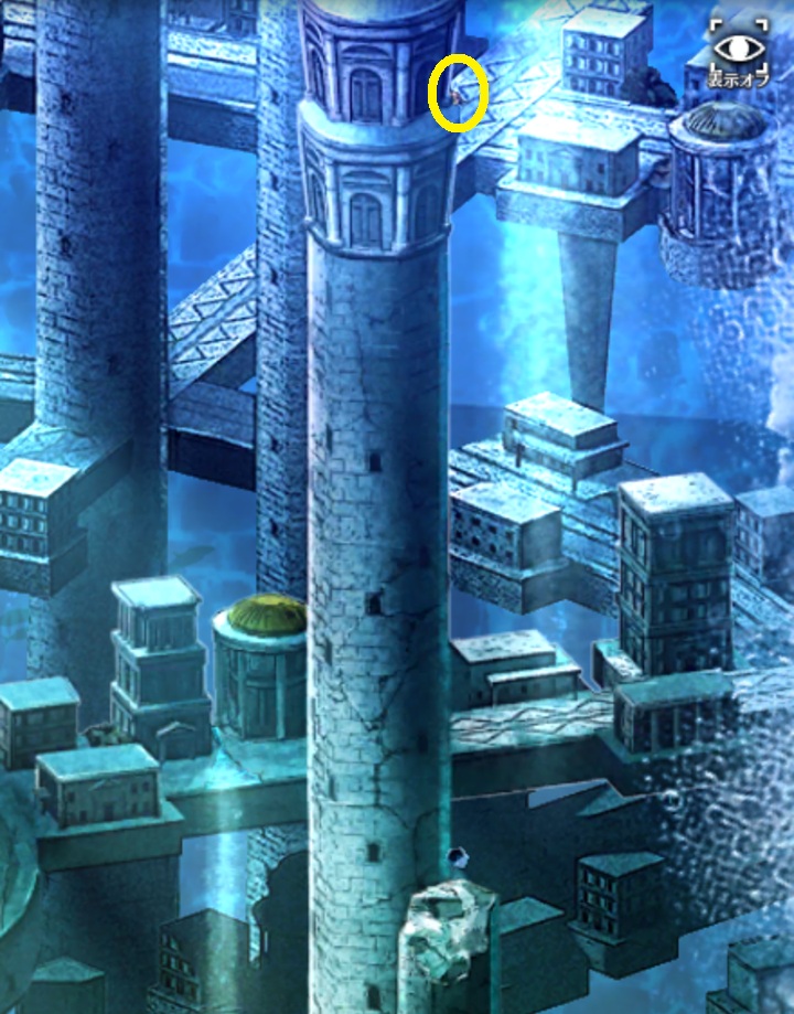 今度は左端の通路にある建物内を出たり入ったりしているので、出たところをタップ。