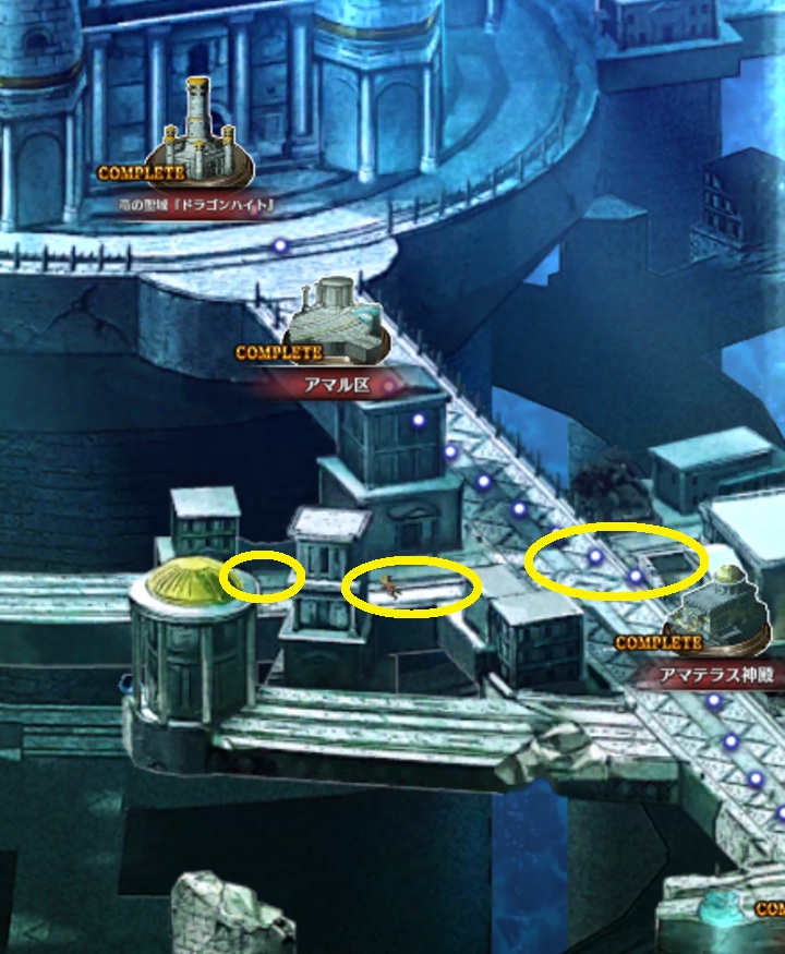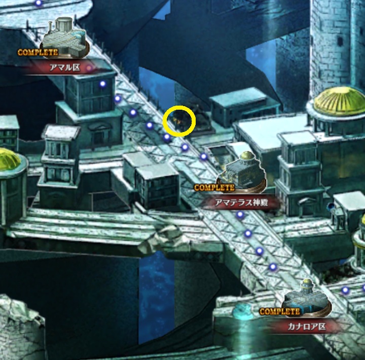 アマル区とアマテラス神殿の通路の間、通路の下の黒い建物内にいます。